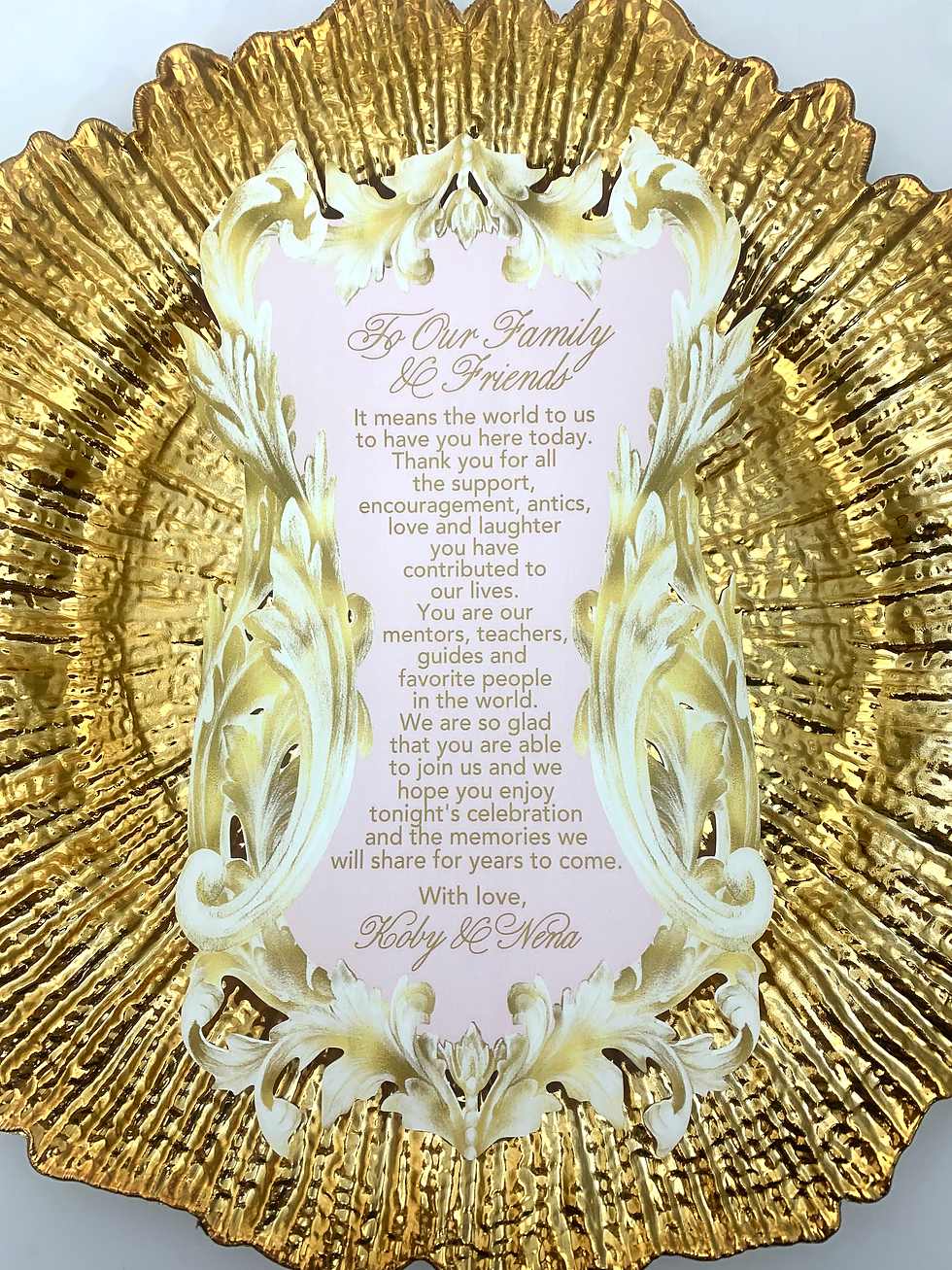 Discover our exceptional custom menus, designed to meet all your event needs, from weddings to birthdays and beyond. Each menu is expertly crafted, printed and cut, ensuring a unique and memorable